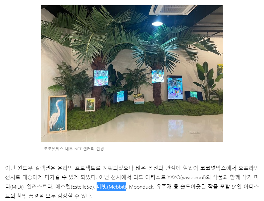 - 코코넛박스 WITH 리드미컬 NFT 클럽 윈도우 컬렉션展 / 공감신문 / 2022.08.16 ▶